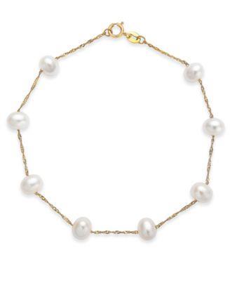 EFFY Collection EFFY® Cultured Freshwater Pearl Station Bracelet (5-1/2-6mm) in 14k Gold | Macy's